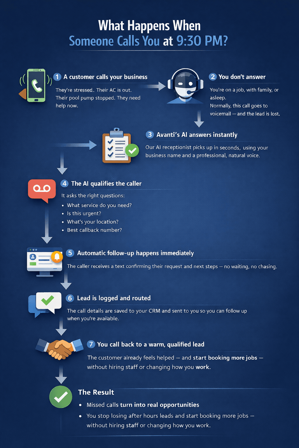 Every missed call becomes a conversation and a lead.